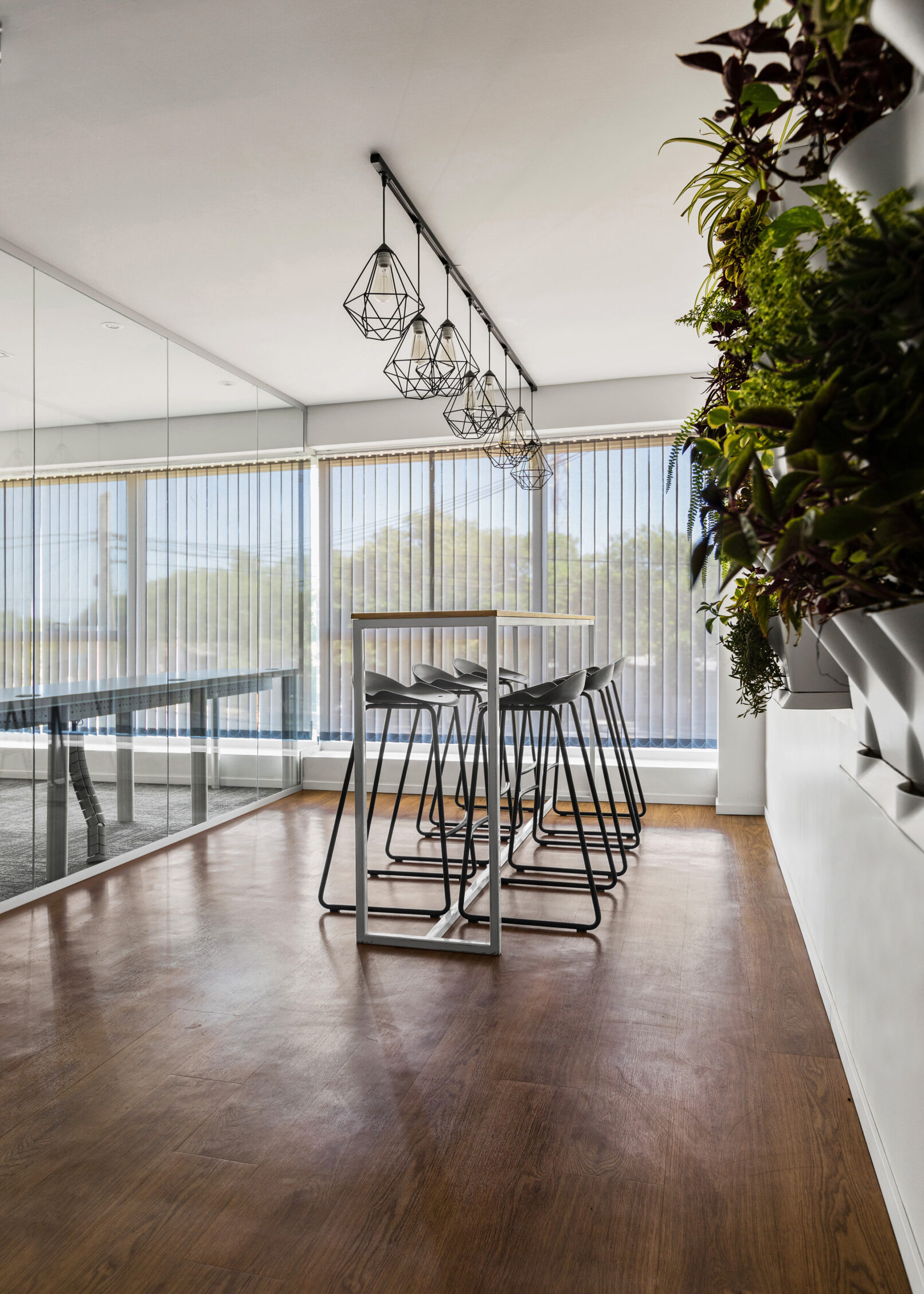 En este caso, nuestra Infinity IX04 convive con nuestros pisos vinílicos Links en su versión madera que, a su vez, introducen elementos de la naturaleza a espacios interiores y corporativos logrando una mejor fusión entre el mundo natural y las áreas de trabajo.